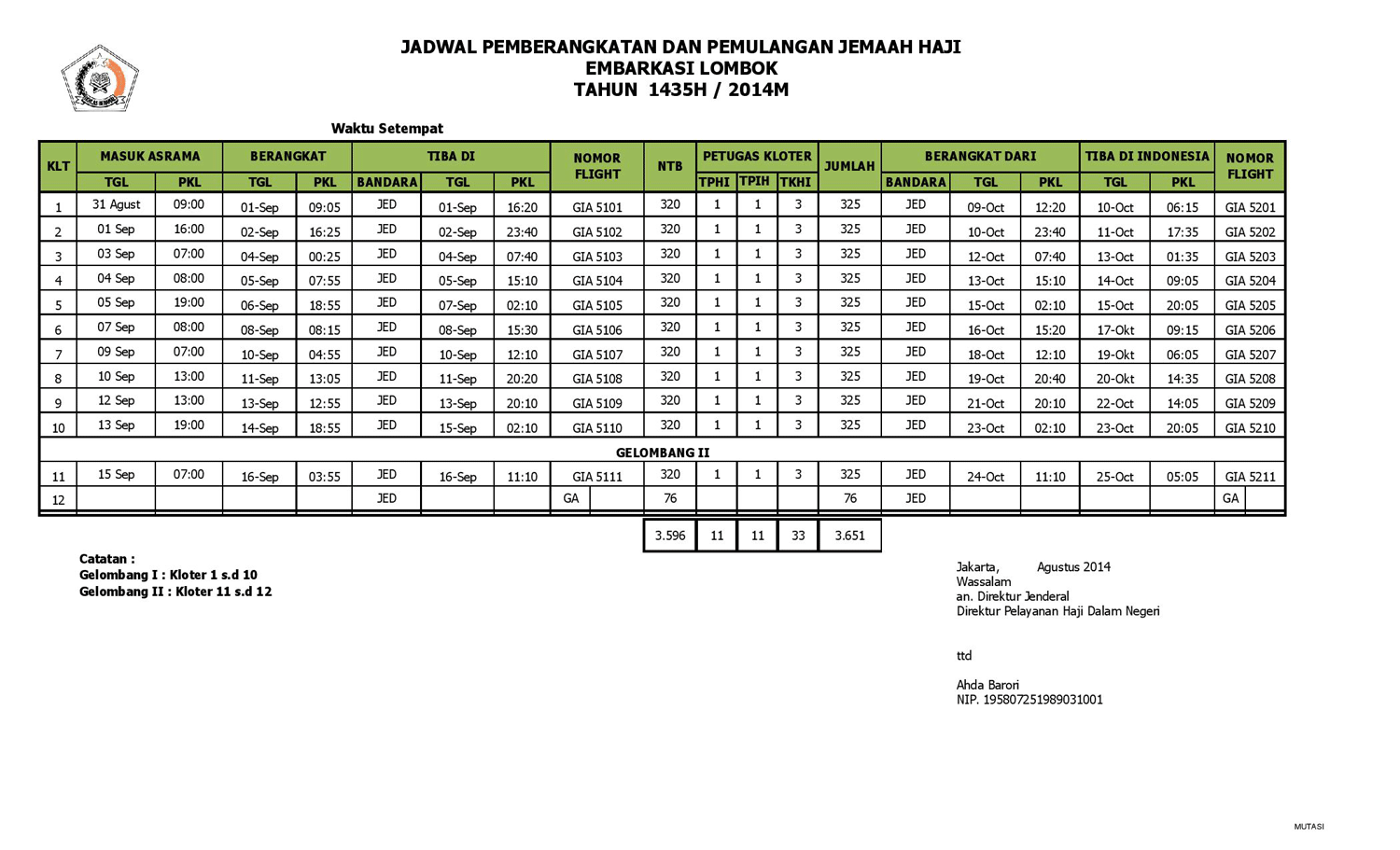 Jadwal Keberangkatan dan Kepulangan